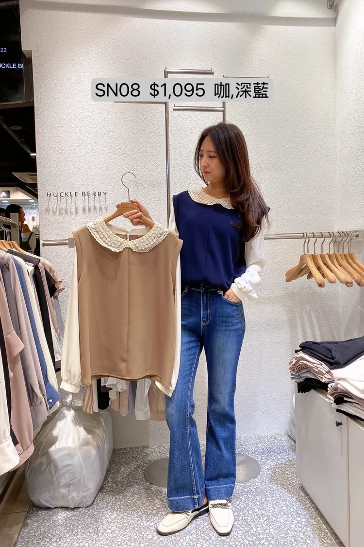 SN08 假兩件棉質緹花領上衣