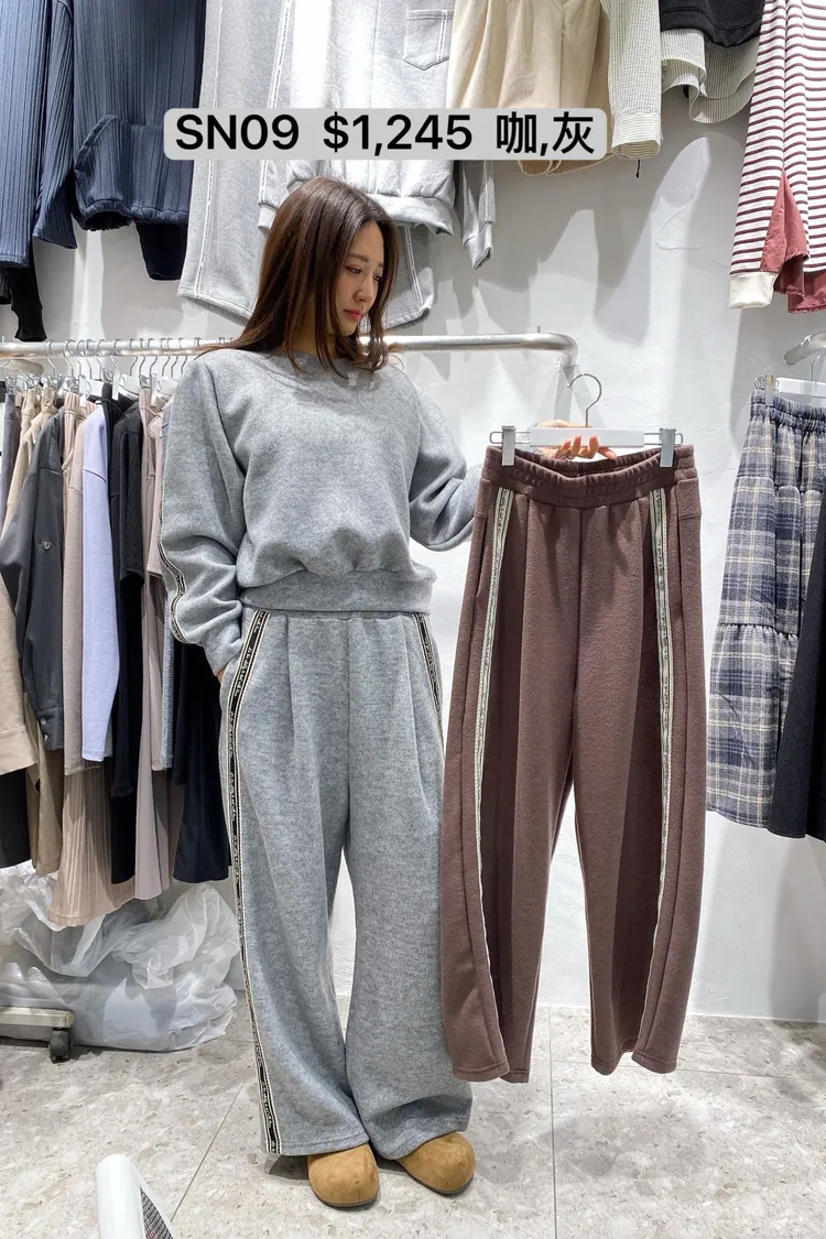 SN09 鬆緊腰字母緞帶拼接綿長褲