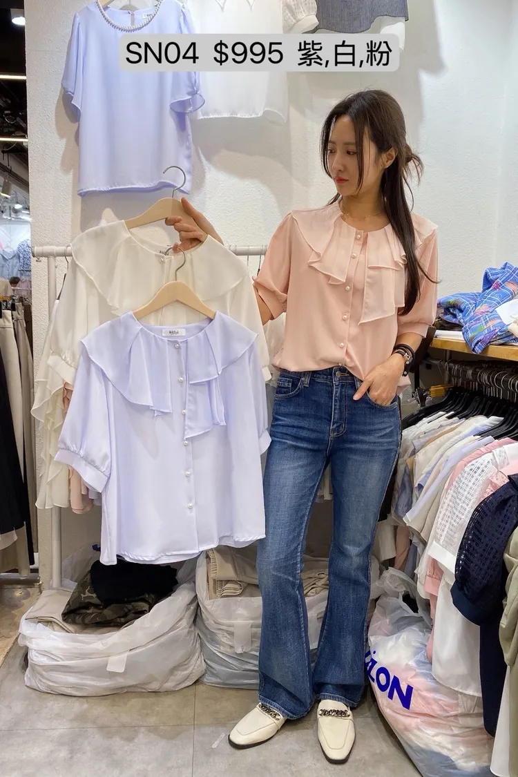 SN04 荷葉領片珍珠排釦上衣