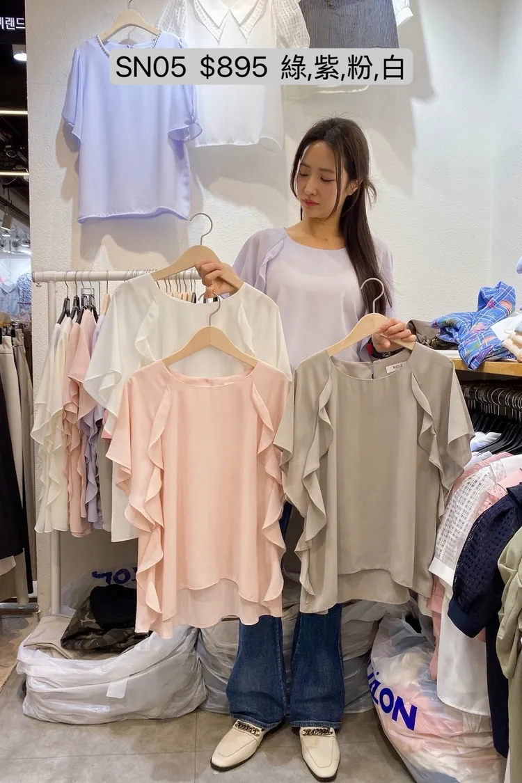 SN05 荷葉拼接蓋袖透膚上衣