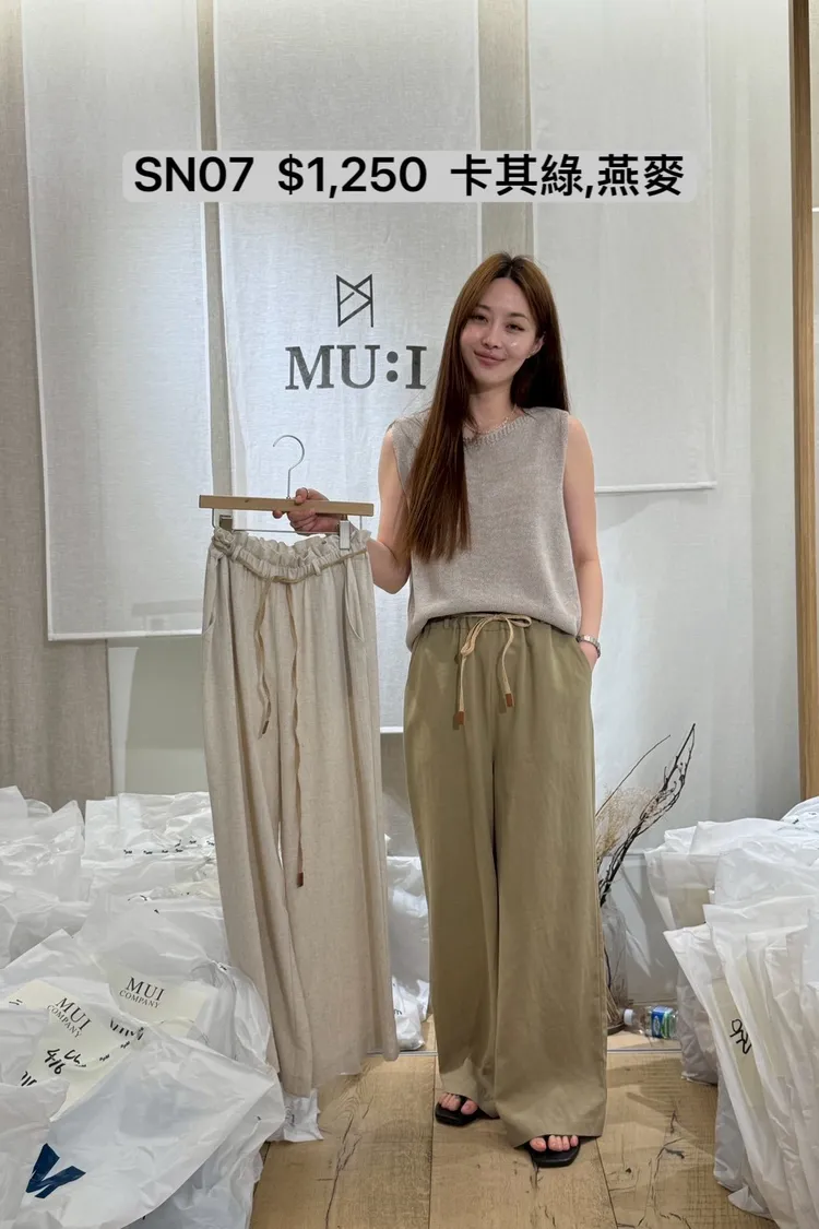 SN07 亞麻腰帶寬褲(人造絲70 亞麻30)
