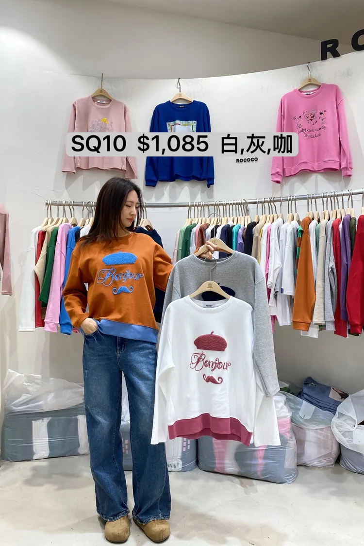 SQ10 下擺撞色QQ毛帽子字母上衣