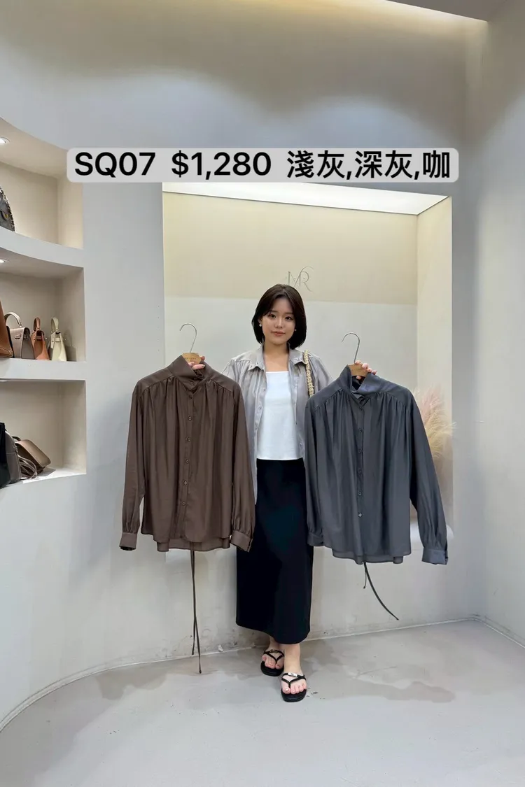 SQ07 天絲附綁帶排扣上衣