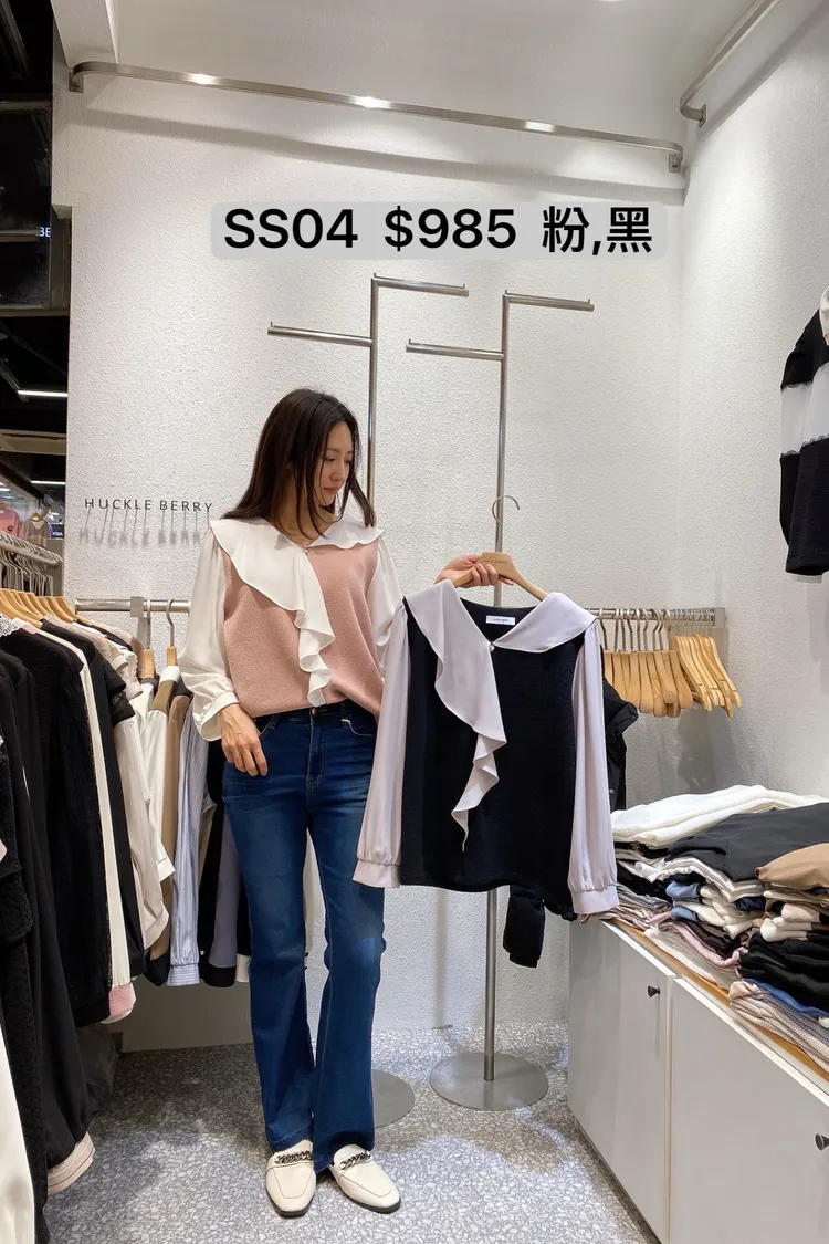SS04 異材質拼接斜荷葉上衣