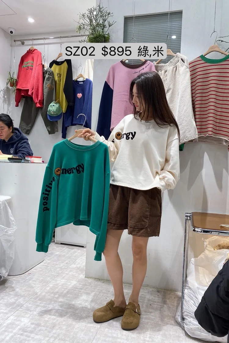 SZ02 電繡字母單袖微笑上衣